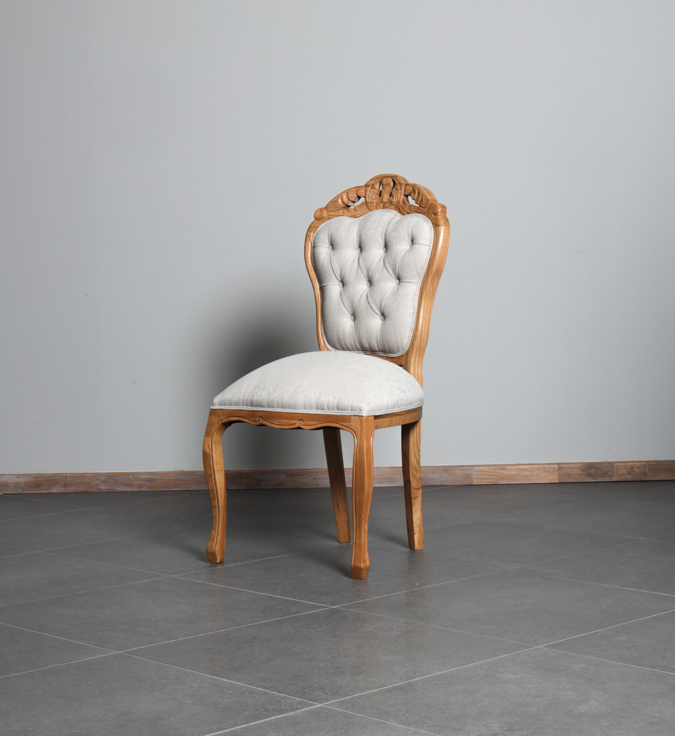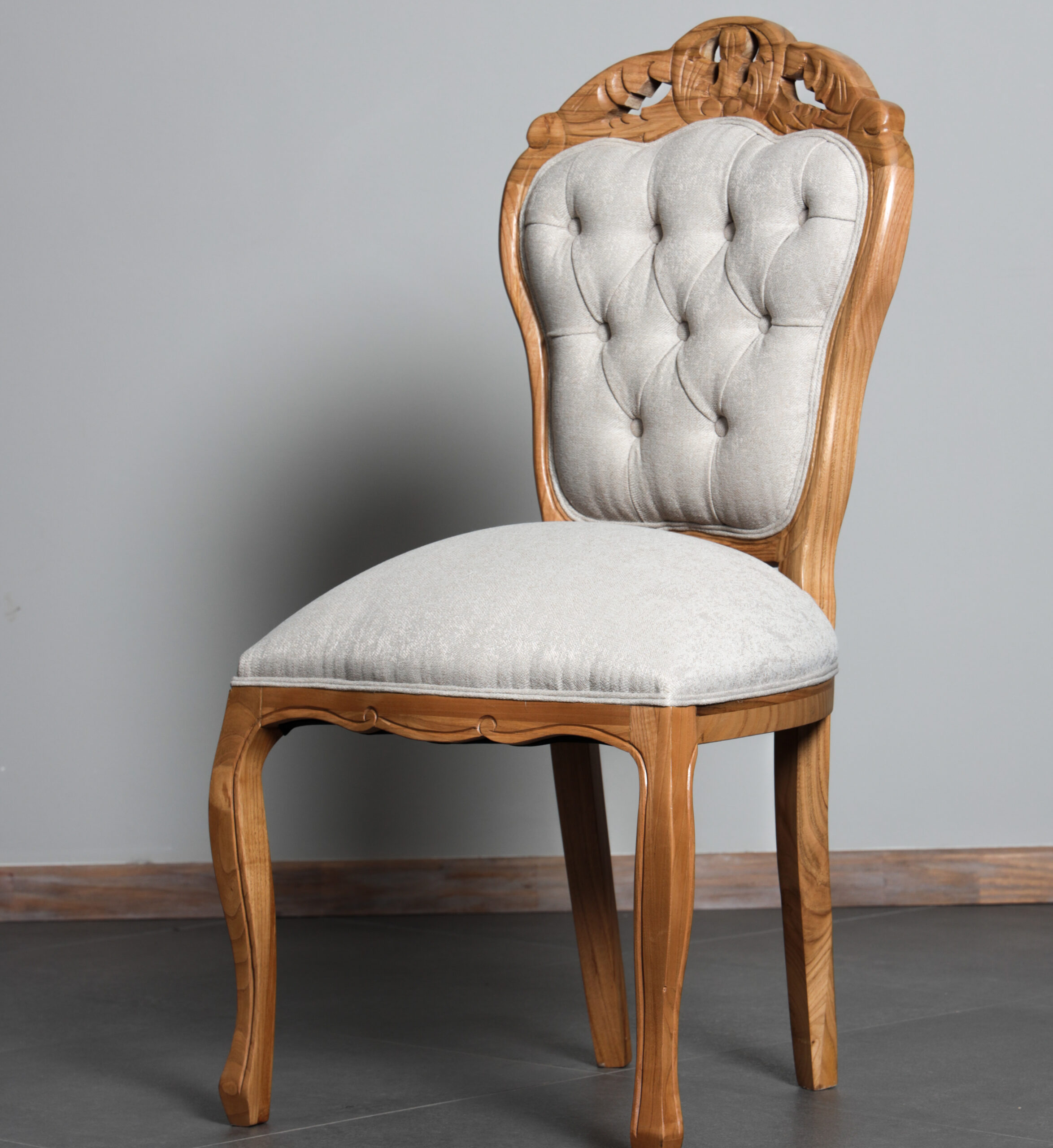 Puedes personalizarlo eligiendo el color del barniz —desde tonos oscuros como el nogal, que realzan su aire clásico, hasta acabados claros como el albayalde o el decapado, para un look más liviano y vintage—. Además, el tapizado hecho a mano, disponible en lino, chenilla o velvet, puede ser liso o con la tradicional técnica del capitoné, aportando textura y calidez.