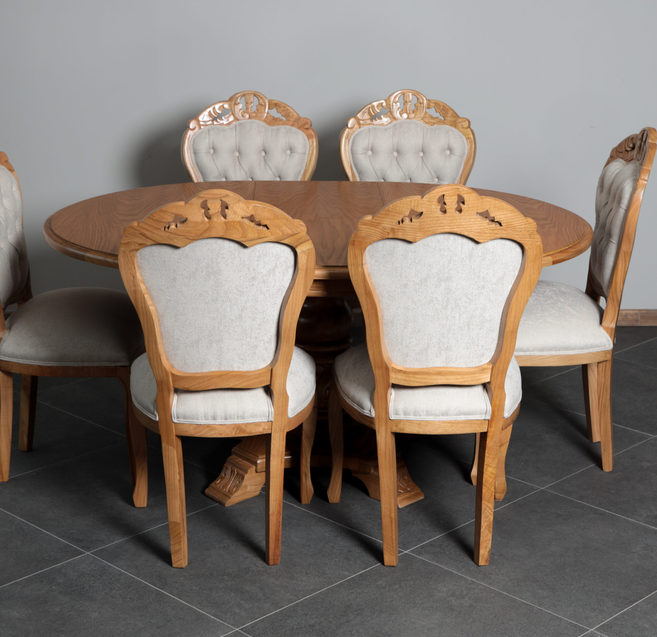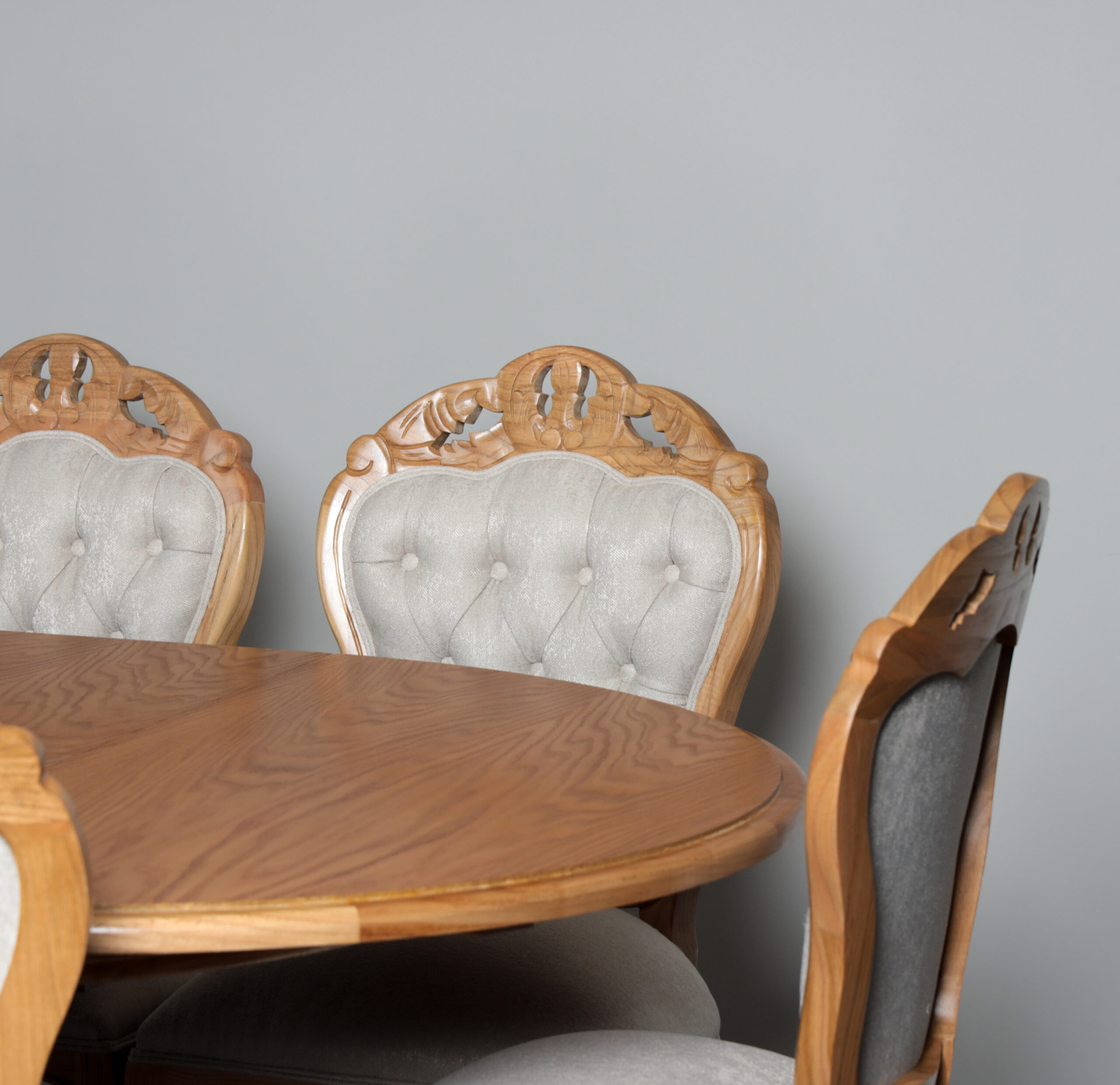 El Comedor Victoriano es una pieza clásica con historia: más de 40 años formando parte de La Alpina y del oficio de nuestros artesanos. Fabricado completamente en madera nativa del sur de Chile, destaca por sus detalles tallados a mano en el respaldo y las patas, inspirados en el estilo normando, que le otorgan carácter y elegancia sin caer en lo recargado.