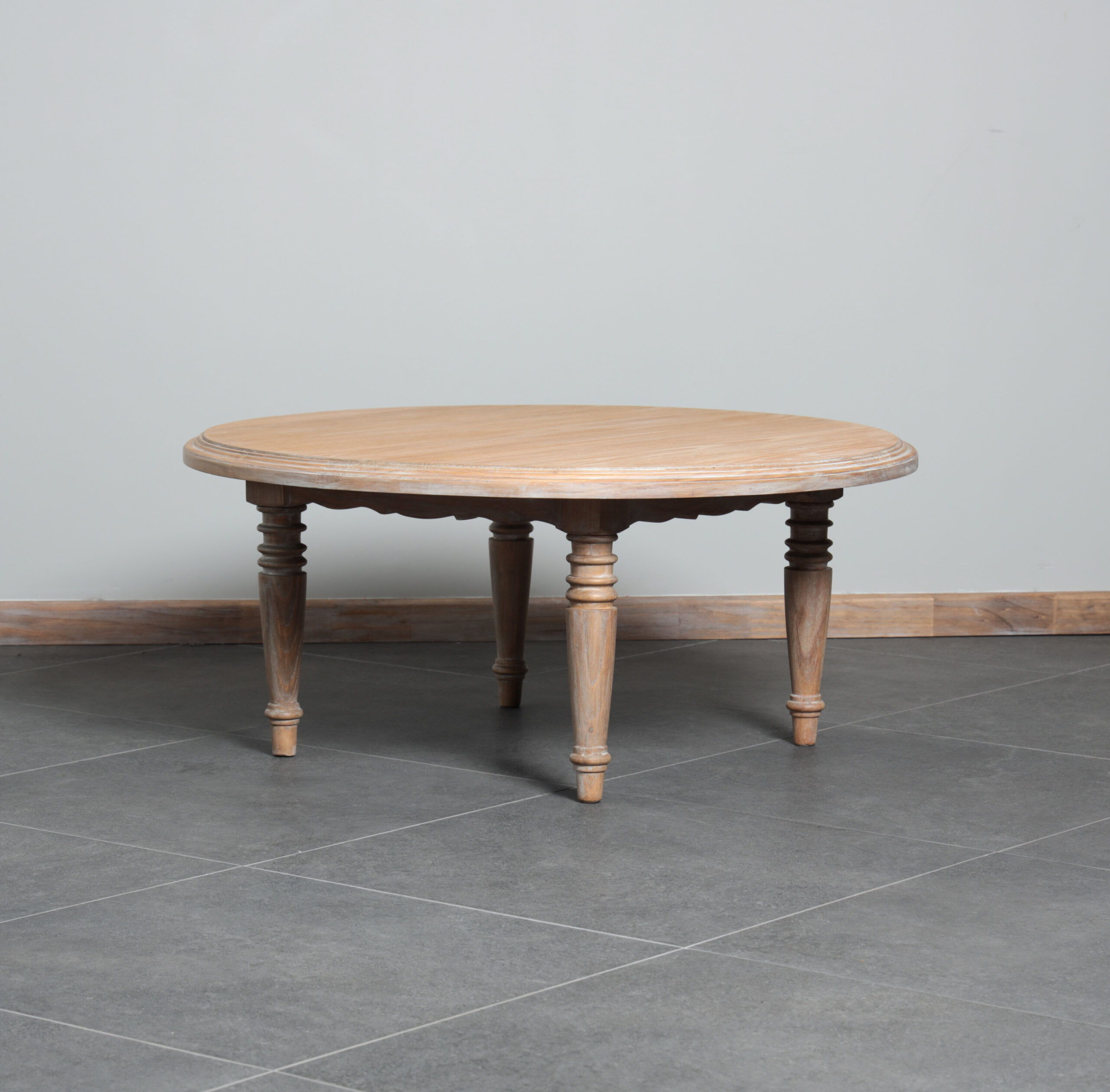 El diseño destaca por sus patas torneadas, que añaden un sutil toque provenzal, mientras que su acabado resalta las vetas naturales de la madera, aportando textura y un carácter acogedor.