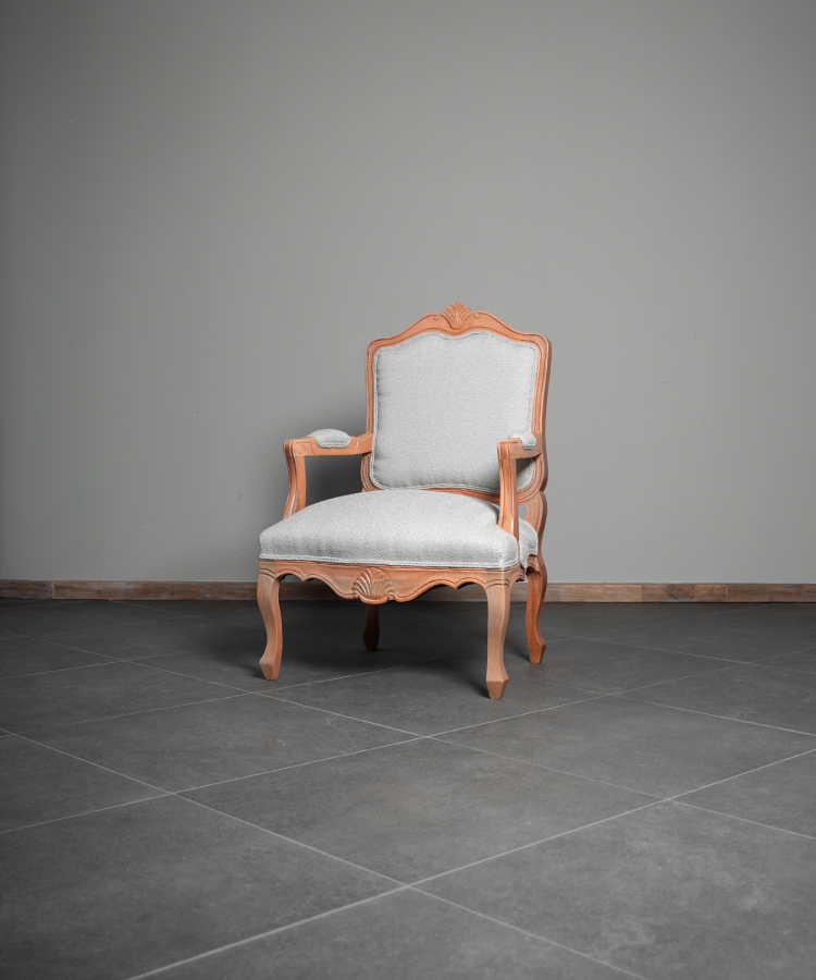 El Sitial Francés es un clásico que nunca pasa de moda. Fabricado en madera nativa del sur de Chile y tallado a mano con delicadeza, destaca por sus detalles finos y su diseño de aires provenzales, logrando ese equilibrio perfecto entre elegancia y liviandad visual.