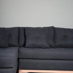 Como todos nuestros sofás, está fabricado con estructura de madera de pino y terciado estructural. La base incluye huincha elástica de alta calidad con un entramado firme, y el relleno mezcla chapón con espuma de alta densidad, lo que garantiza comodidad y durabilidad. Está completamente tapizado —incluso en zonas ocultas como la parte baja de los cojines— y sus terminaciones están reforzadas con doble costura en brazos, cojines y respaldo. Esto permite usarlo como separador de ambientes sin necesidad de apoyarlo en un muro, ya que luce bien desde todos los ángulos. Los brazos están bien estructurados (no huecos) y las patas de madera aportan mayor estabilidad.