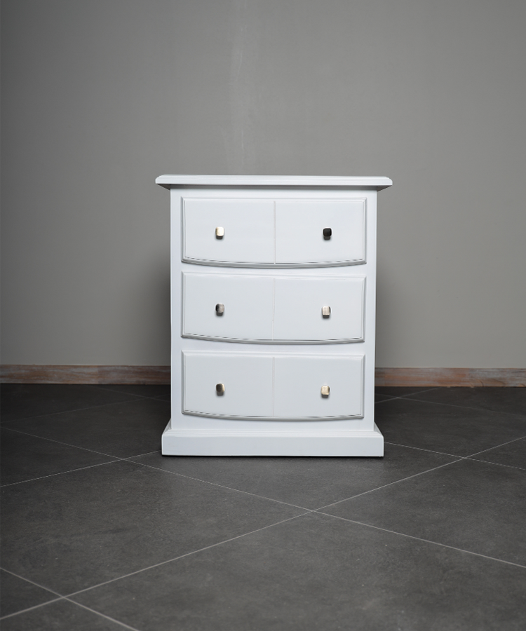 El Velador Curvo presenta un diseño simple y elegante, destacando por la suavidad de sus molduras y el detalle único de sus cajones curvos. Fabricado artesanalmente en madera de raulí y barnizado en un tono blanquecino, es una pieza atemporal que se adapta a diversos estilos y colores. Aprovecha esta oportunidad para llevarte una de las últimas unidades en stock, añadiendo estilo propio y calidez a tu dormitorio.